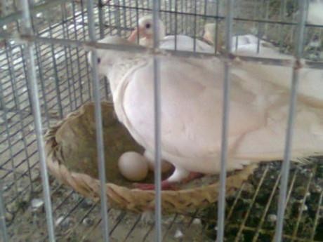Hình ảnh chim Bồ Câu Pháp đang đẻ trứng.
