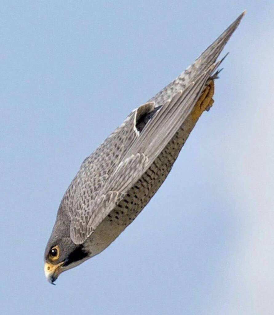Hình chim Cắt lớn đang thu mình và bay bổ nhào xuống đất.