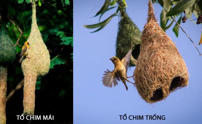 Tổ chim trống thường đơn giản hơn so với chim mái, tổ chim mái làm thường dài hơn so với tổ chim trống, bạn chỉ cần nhìn vào kích thước tổ để phân biệt là trống hay mái.
