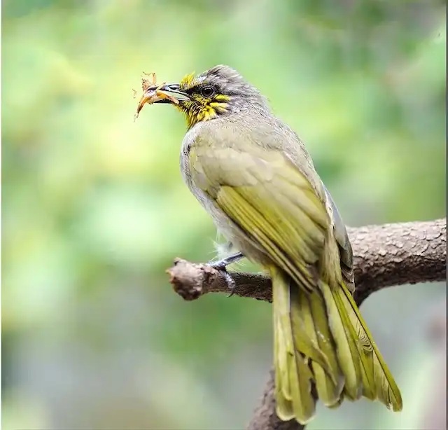 Ảnh chim Quành Quạch vàng đang ăn mồi.