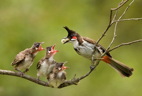 - Hãy quan sát phản xạ há miệng của chim con để cho ăn đúng lúc giúp chim tiêu hóa tốt và phát triển khỏe mạnh.