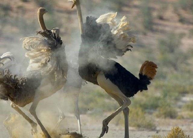 Con chim đà điểu sẽ dùng chân và mỏ để tấn công đối thủ khi cận chiến.
